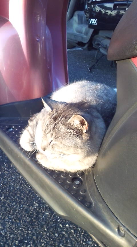 バイクの上でお猫様がむにゃむにゃしてた図。