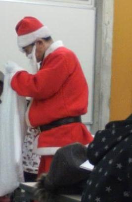 昨日の話ですが、教室にサンタさんが来ました。